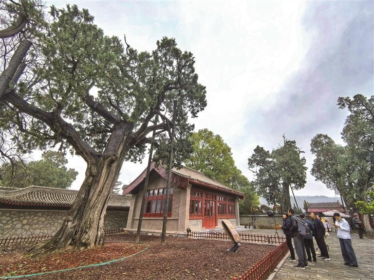 游客在观赏黄帝手植柏(资料照片)。 本版照片均由记者 田若楠摄