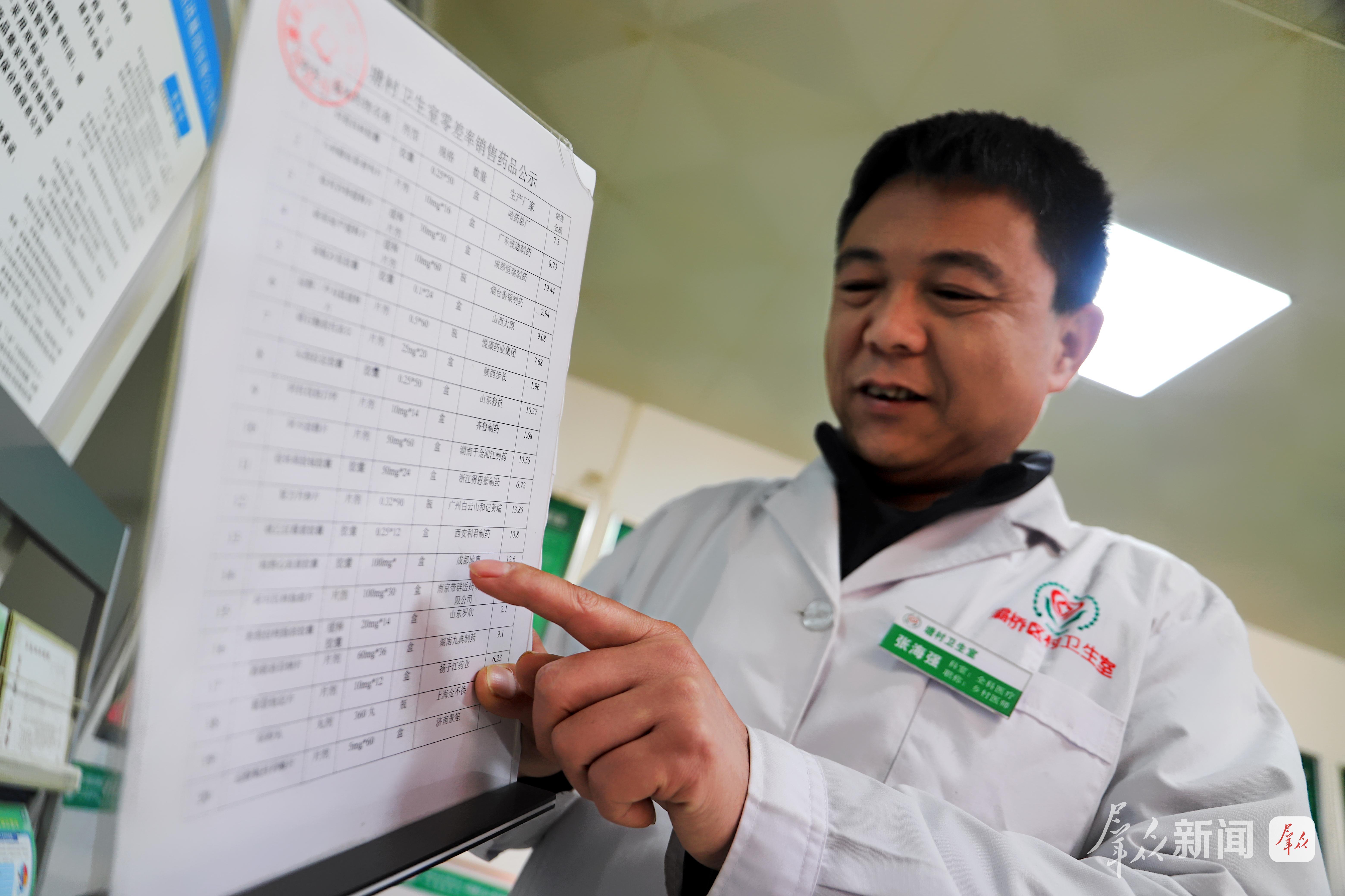 土生土长的张海强熟悉村里每位患者病情,年接诊2600余人次。他把集采药品价格公示牌挂在卫生室醒目位置,“有些群众不知道集采政策,咱要主动宣传哩!”张海强说。