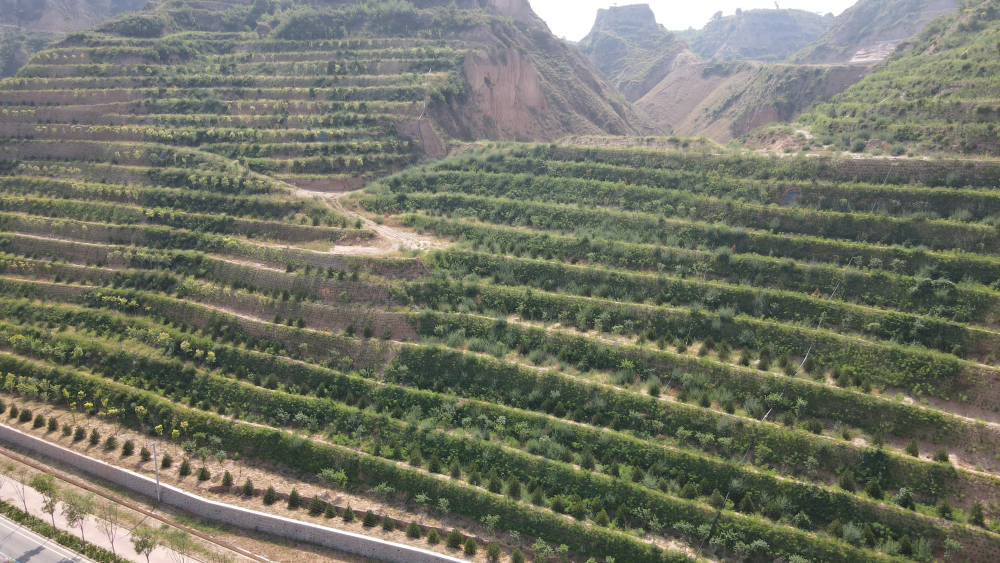 图为万荣县汾河左岸堤防坡面生态治理景象。新华社发