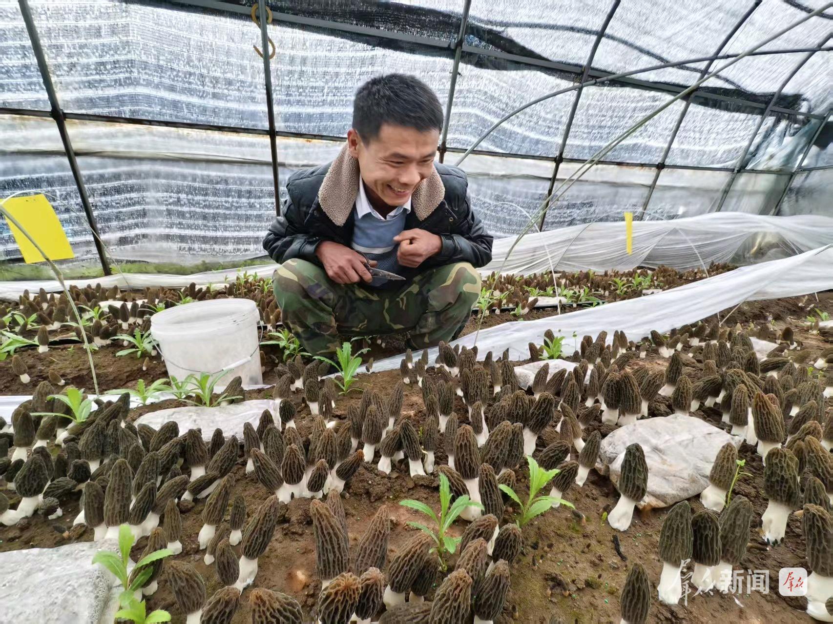 “没想到首年种植就喜获丰收,而且收获时间较往年提前20余天。”雷少辉高兴地说。今年38岁的雷少辉,过去一直种植瓜果蔬菜,刨去人工成本,收效甚微。后来了解到种植羊肚菌收益高、前景广阔,阳郭镇又地处渭水之南、秦岭北麓的浅山地带,具有海拔高、空气湿度好、土壤保水性佳等优势,非常适宜羊肚菌生长。但羊肚菌管理技术要求高、风险大,这使他一度有些犹豫。直到两年前结识了羊肚菌种植技术员张国强,雷少辉的梦想才得以实现。