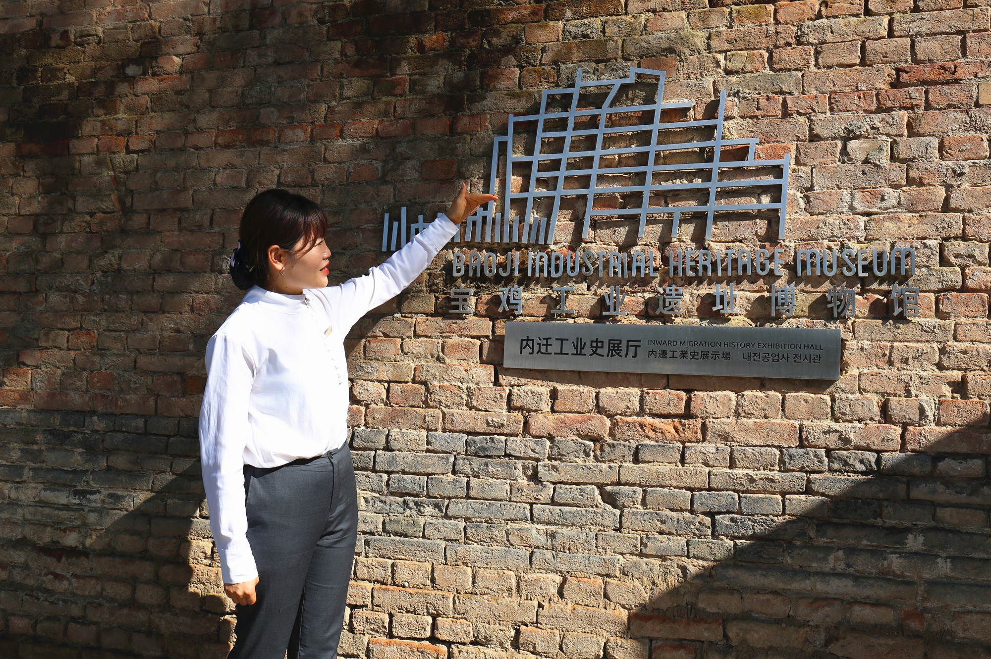 胡雪在介绍宝鸡工业遗址博物馆。