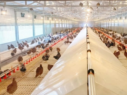 眼前这座充满科技范的鸡舍早已实现了全自动、现代化喂养,不仅温度、湿度、通风等实现了智能化。
