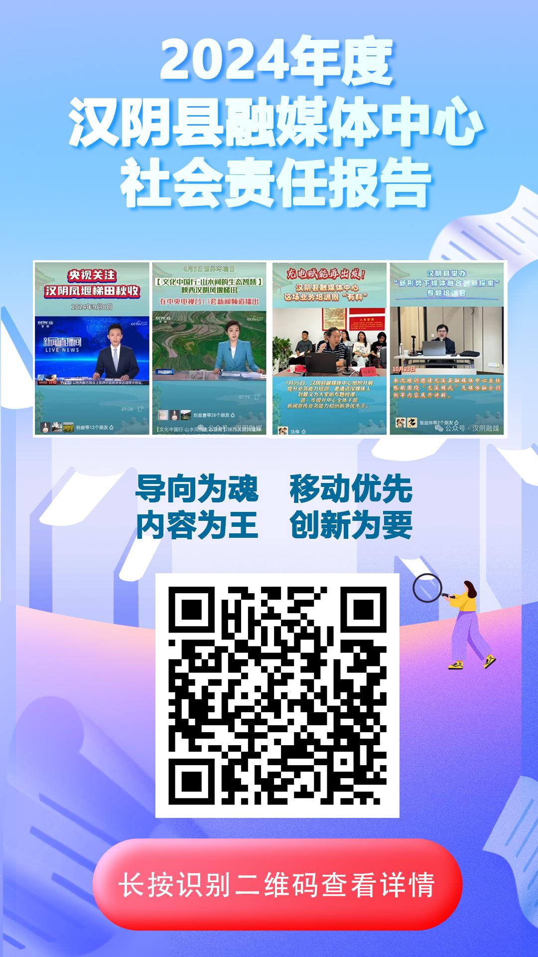 按照中宣部、中国记协相关通知要求,省委宣传部、省记协于4月起组织开展2024年度陕西省媒体社会责任报告工作,要求各新闻单位坚持真实、准确、全面、公开原则,从政治责任、阵地建设责任、服务责任、人文关怀责任、文化责任、安全责任、道德责任、保障权益责任、合法经营责任等方面,总结上一年度履行社会责任整体情况,自觉接受社会监督。今年,全省共有53家省、市、县级新闻单位发布报告,部分地市继续扩大报告范围,鼓励更多县级融媒体中心积极参与媒体社会责任报告发布工作,以此作为推动新闻单位强化社会责任意识、积极履行社会责任的有力抓手。为丰富报告发布形式,增强报告传播效果,各新闻单位除发布图文版报告外,均同步制作并发布了短视频、H5等多媒体版本及宣传海报,工作传播力、影响力稳步提升。[详情]